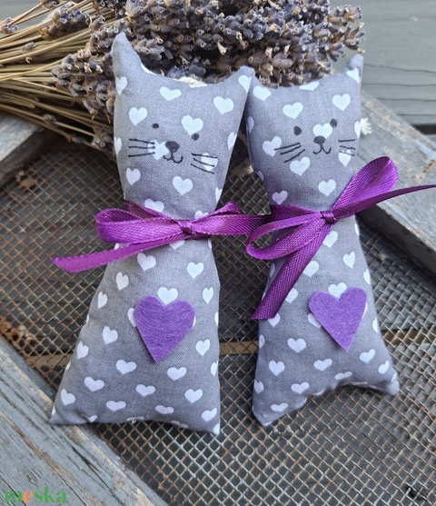 Levendula -szürke -cicák párban, illatzsákok, illatpárnák- 2db, levendulavirággal töltve