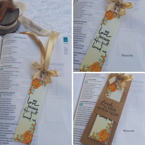 we love because...- Bibliai igés akril könyvjelző szalaggal