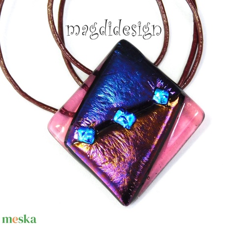 Színjátszó kék arany-bíborfény üvegékszer nyaklánc