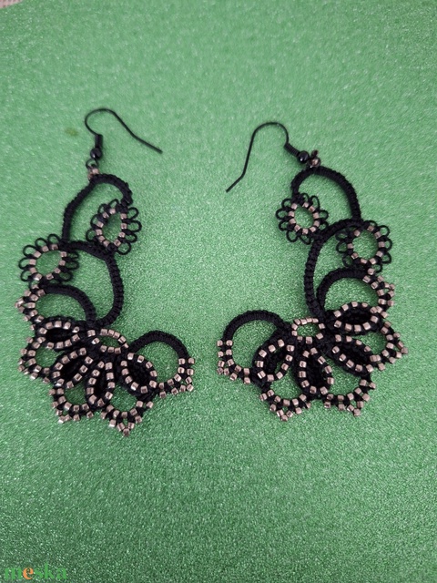 Fekete színű bronz színű gyöngyökkel díszített fülbevaló