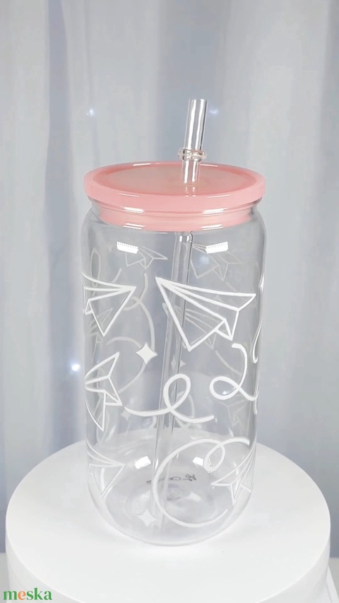Műanyag szívószálas pohár, tetővel