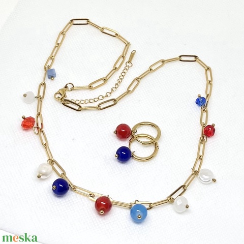 Kék piros ékszer szett