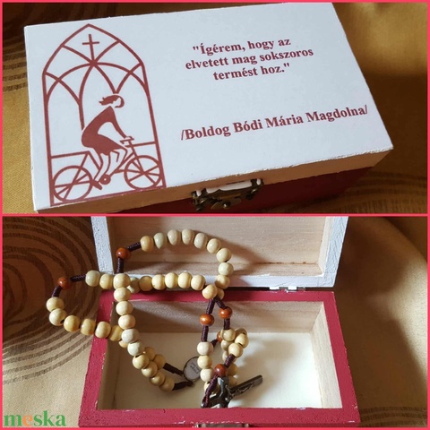Boldog Bódi Mária Magdolna emlékőrző, ékszertartó fa doboz
