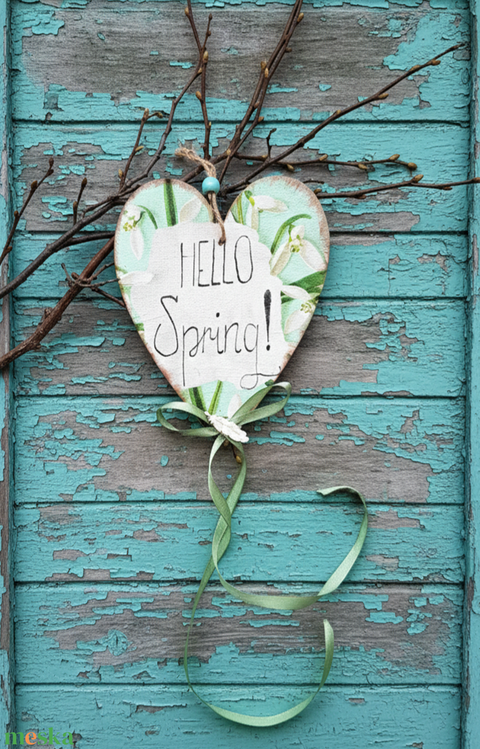 Hóvirágos tavaszi hangulatú faszív, ajtódísz, függődísz