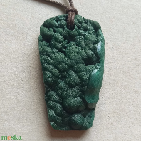 Nyers malachit medál pamutszál ölelésében, Mélységes megnyugvás, Malachit medál, Malachit