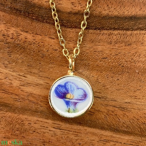 Aranyozott pici medál - Zsolnay mentett darabok - kék virágos medál vagy nyaklánc