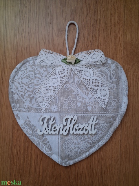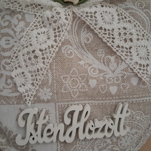 - Anyaga: pamutvászon, fa, pamut csipkeszalag