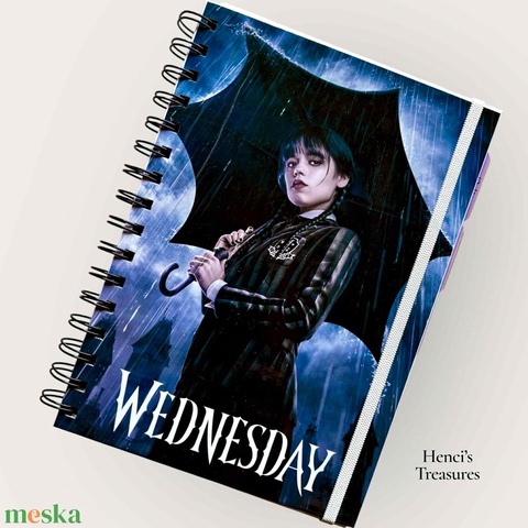 Wednesday témájú, A5 méretű jegyzetfüzet könyvjelzővel és zsebbel