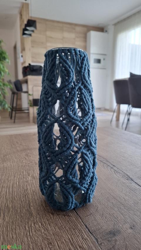 - Anyaga: pamut fonal, pamut, üveg váza, üveg