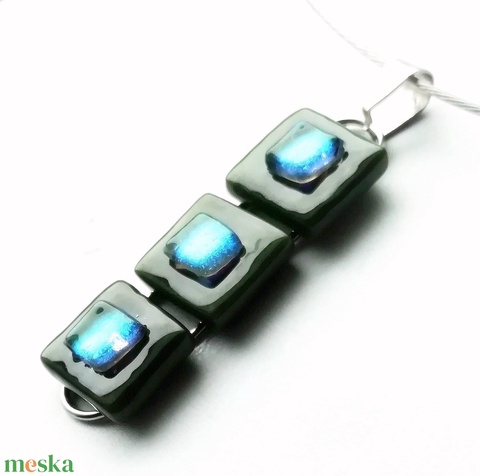 NEMESACÉL! Zöldben kék kockák dichroic nyaklánc.