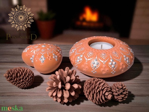 Mécsestartó + szív Mandalás szett (lazac alapszínben)