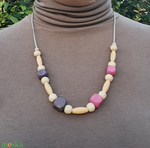 Bézs és rózsaszín fa nyaklánc