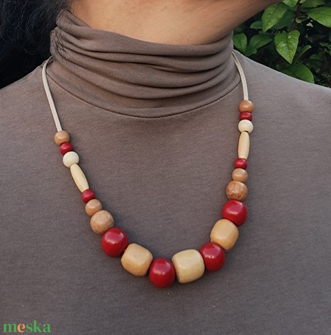 Bézs és bordó fa nyaklánc