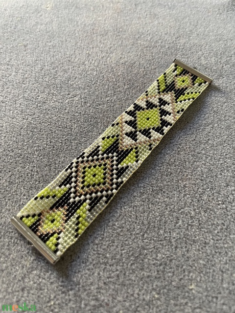 Zold- fekete gyongyszovott karkoto