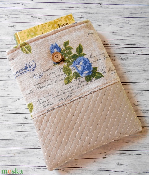 Beige alapon kék rózsa mintás vintage stílusú könyvtok