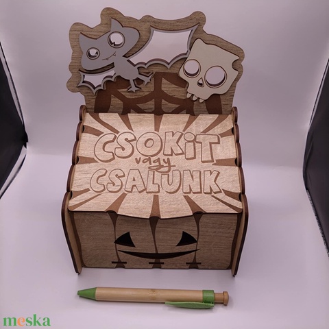 Csokit vagy csalunk – Halloween töklámpás fa édességtartó doboz