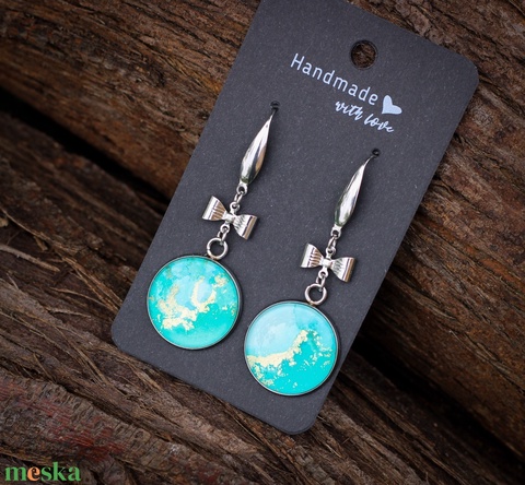 - Anyaga: nemesacél fülbevaló alap, uv gyanta, üveglencse, szintetikus alapra készült festmény