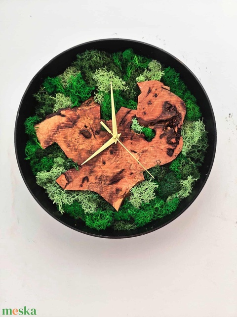 Fa belsővel, fém kerettel, stabilizált 3 féle mohával exkluzív fali óra