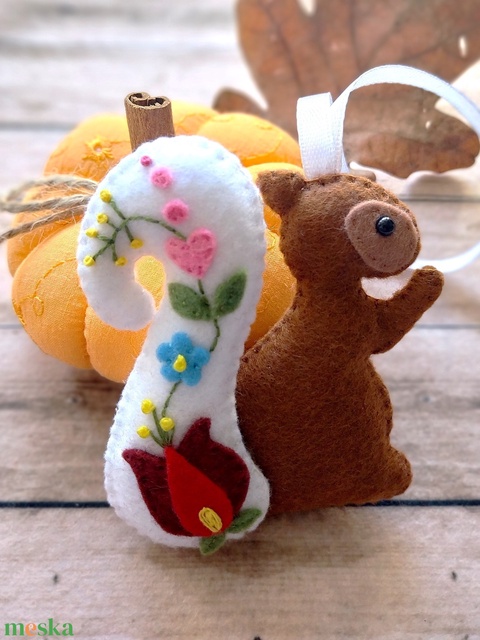 Filc mókus Kalocsai mintával - őszi dekoráció