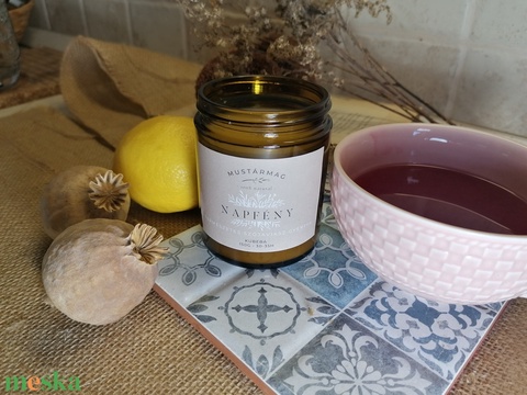 Napfény szójaviasz illatgyertya, poharas gyertya tetővel