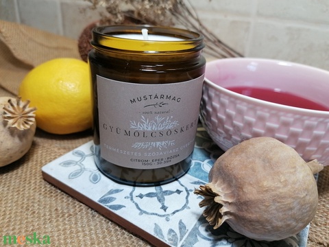 Gyümölcsöskert szójaviasz illatgyertya, poharas gyertya tetővel