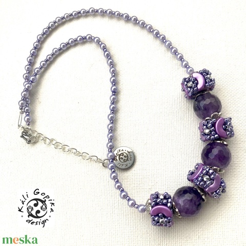 Lila gyöngyös nyaklánc Ametiszt golyókkal