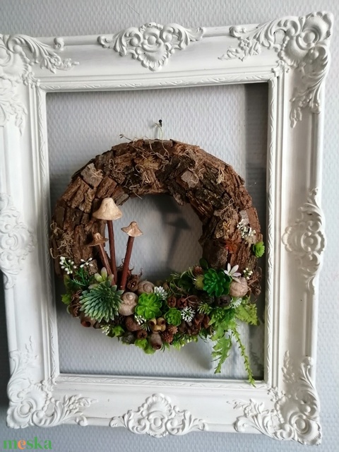 - Anyaga: koszorú alap, zöldek, gombák, fakéreg