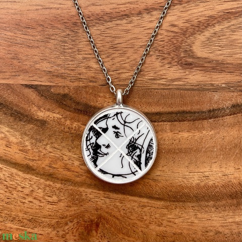 Mentett porcelán darabok - LÁNY, NŐI ARC nyaklánc - mozaik medál nemesacél lánccal