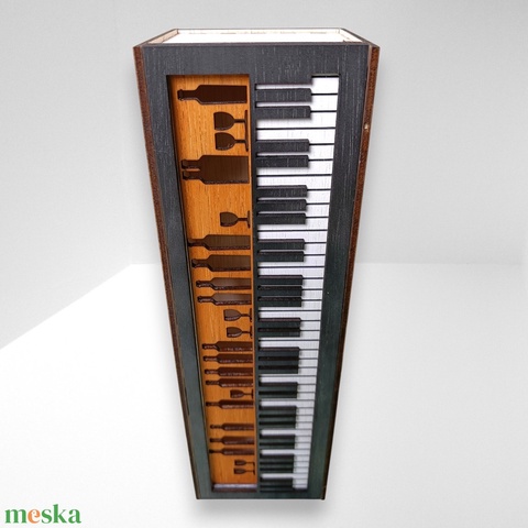 Lézervágott, kézműves bortartó zongora mintával, a bor és a zene szerelmeseinek