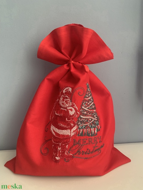 Mikulás zsák, karácsonyi ajándék zsák hímzett mintával