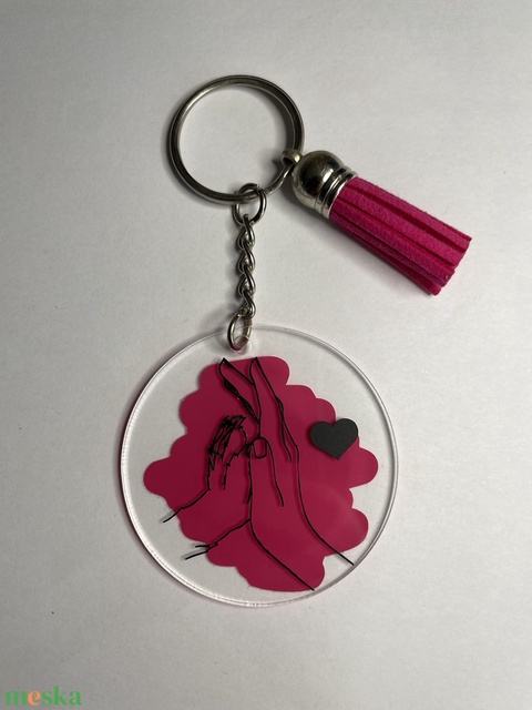 Kutya mancs és kéz motívumos plexi kulcstartó – rózsaszín alapon