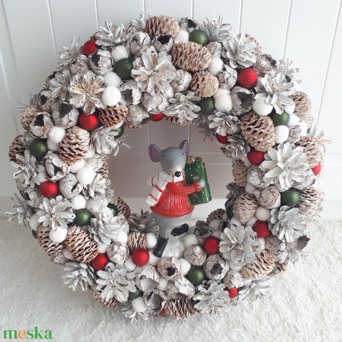 - Anyaga: szalma alap, termések, dekorációs elemek, egérkés figura
