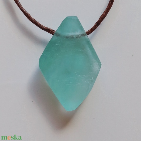Egyedi színű, nyers kézi csiszolású kék zöld fluorit medál pamutszálon