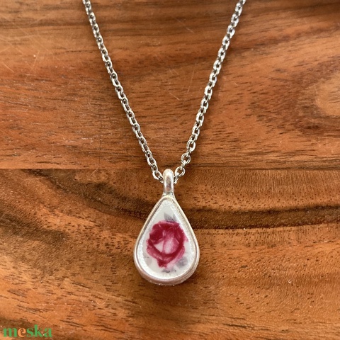 Zsolnay mentett darabok - pici rózsás porcelán nyaklánc - csepp medál nemesacél lánccal