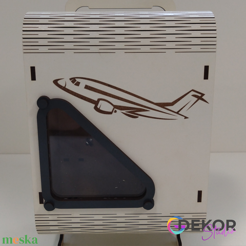 Gurulós bőrönd alakú ablakos persely - repülő mintával, plexi előlappal