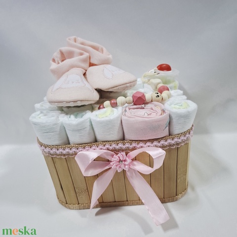 Tipegő baba box cumilánccal, pelenkatorta 2-5 kg pelenkatorony, babaváró csomag, kelengye