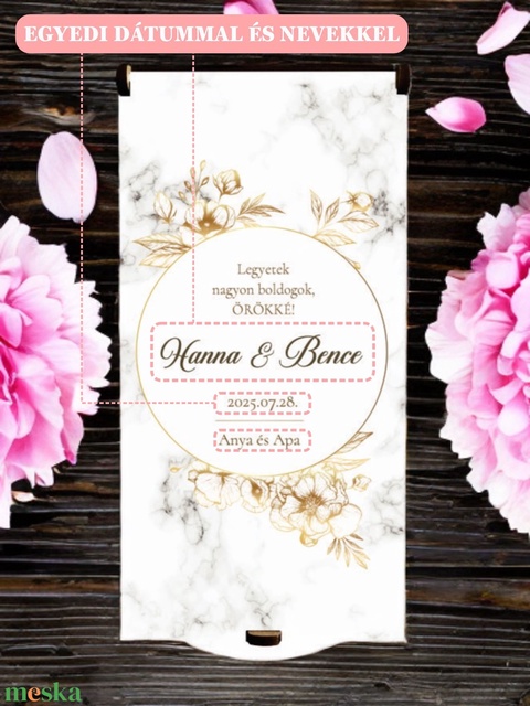 Exkluzív esküvői pénzátadó doboz - UV nyomott, egyedi nevekkel, mintával