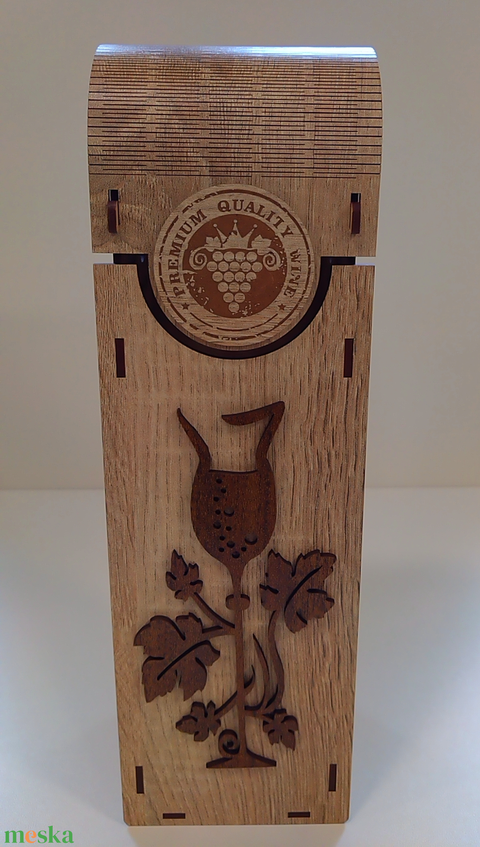 Boros doboz, bortartó - lézer-vágott, gravírozott boros doboz szőlő mintával