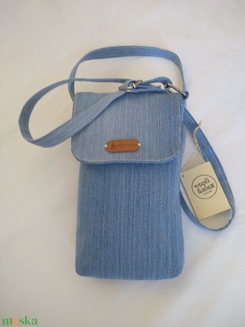 Keresztpántos mobiltáska, irattáska mentett farmerból