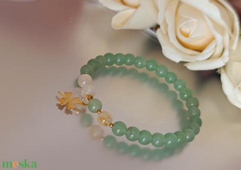 Bőségvonzó ásványkarkötő citrinnel és aventurinnal, lóhere medállal