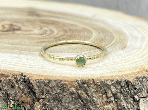 14 karátos sárga arany, akva kalcedon, kő, arany