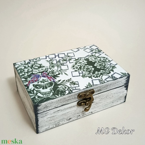 fadoboz, alapozó, akrilfesték, decoupage ragasztó, szalvéta, lakk
