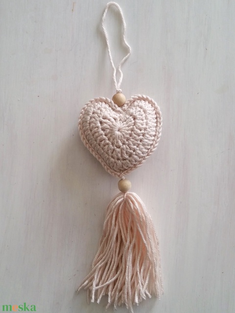 Baba dekor - gyerekszoba dísz - horgolt szív dekoráció - függő szívecske - falra akasztható ajándék