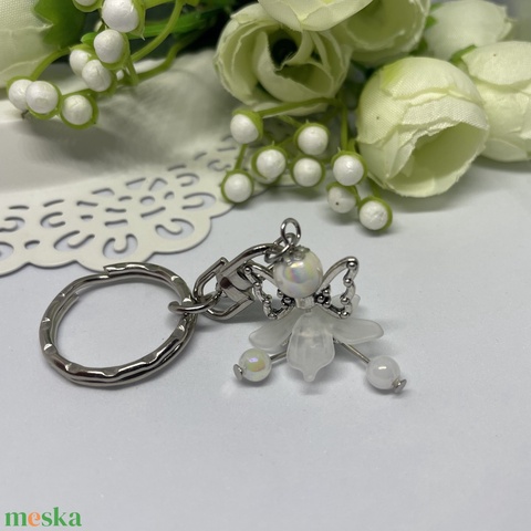 Angyalka kulcstartó gyöngyökkel karácsonyi ajándék