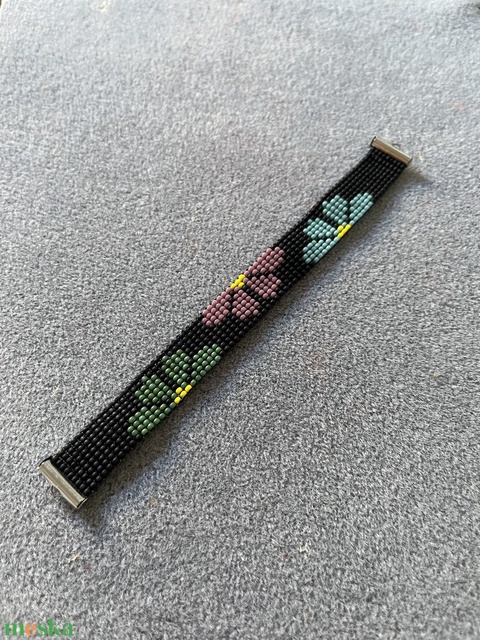 "három virag" gyöngyszövött karkötő