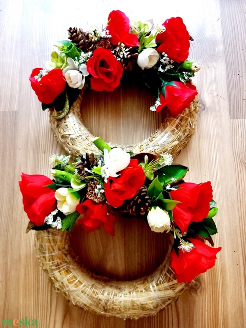 - Anyaga: szalma alap, termések, szatén szalag, ragasztó, madzag, barackmag, gesztenye, makk, dió