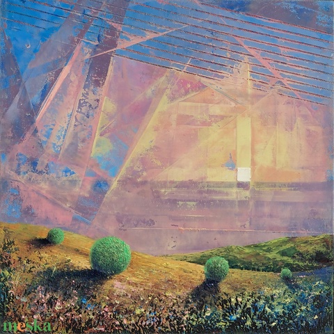 Időtlenség - Absztrakt tájkép, olajfestmény keretezve, akasztóval - azonnal falra akasztható.
