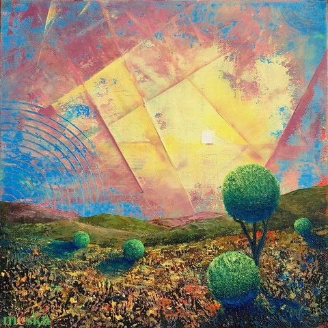 Végtelen kapu - Absztrakt tájkép, olajfestmény keretezve, akasztóval - azonnal falra akasztható.
