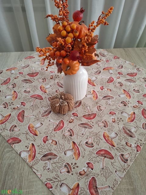 Őszi terítő, asztalközép - gombás, őszies natúr színvilágban