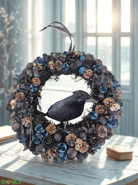 Halloween ajtódísz fekete hollóval